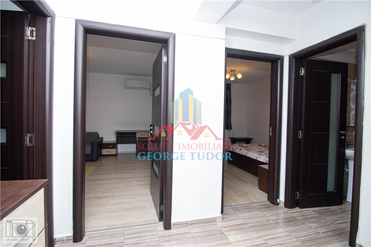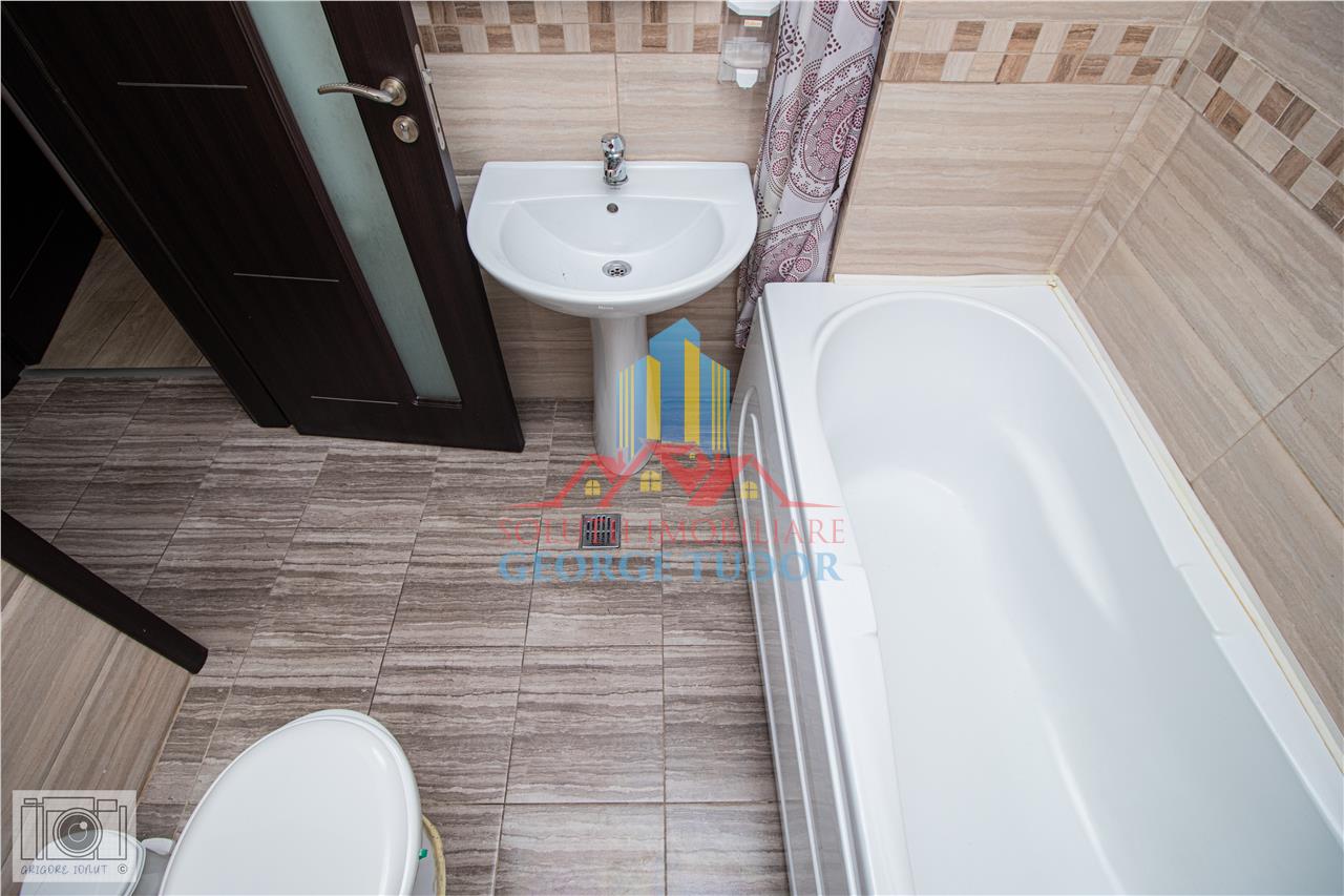 Apartamentul este complet mobilat si utilat, beneficiind de centrala proprie pe gaz, aer conditionat, masina de spalat rufe, frigider, cuptor electric, plita pe gaz, hota, TV si multe alte dotari gandite pentru confortul zilnic.